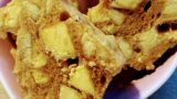 3.豆腐を食べやすい大きさに切ります、クッキングシートの器にもやし→豆腐を入れて、溶き卵